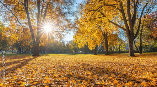 Fototapeta premium Golden Autumn Leaves in a Sunny Park