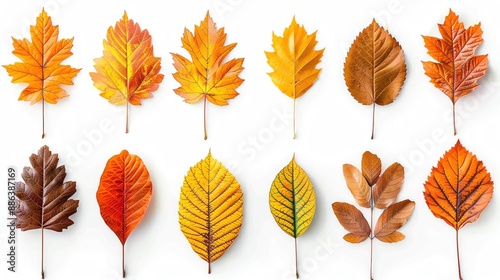 © Stock Media Labs, Fototapeta premium Golden autumn leaves set on solid white background