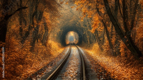 © Horsi, Naklejka premium Golden Autumn Railroad Tunnel