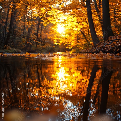 Naklejka premium Golden Autumn Sunset Reflecting on Calm