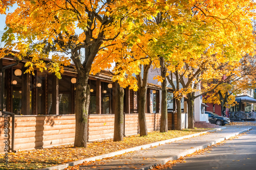 Naklejka premium Golden autumn trees in an alley in Moscow on an autumn sunny day