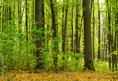 © photolink, Fototapeta premium Golden autumnal forest with sunbeams