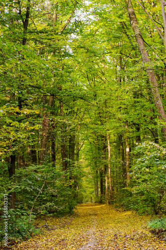 Obraz premium Golden autumnal forest with sunbeams
