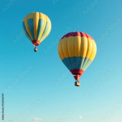 Fototapeta premium Golden & azure balloons ascend a vivid blue sky , asset, elegant, luxury