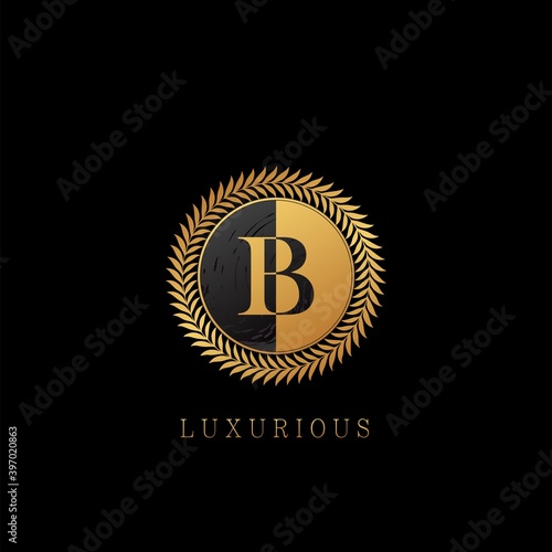 © SimpenArt, Naklejka premium Golden B letter Logo Luxurious Nature Leaves, elegance vector design concept circle floral leaves with negative space letter logo.