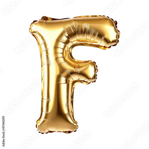 © ryanbagoez, Fototapeta premium golden balloon shape for alphabet F on white background for birthdays, parties and celebrations