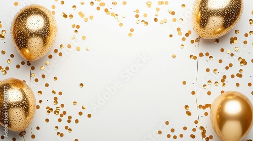 Fototapeta premium Golden Balloons and Confetti on White Background