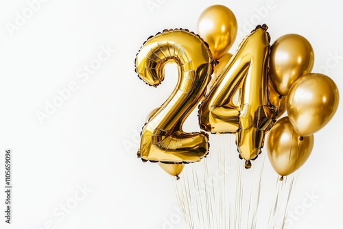Fototapeta premium Golden balloons, prominently featuring the number 24, set against a clean...
