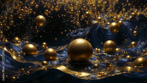 © vvicca, Fototapeta premium Golden balls on blue waves. AI