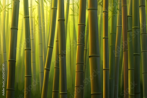 © Irfanan, Fototapeta premium Golden Bamboo Forest Sunrise.