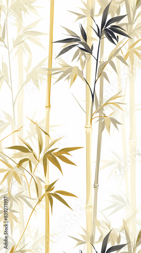 © ma, Obraz premium Golden bamboo leaves and branches pattern