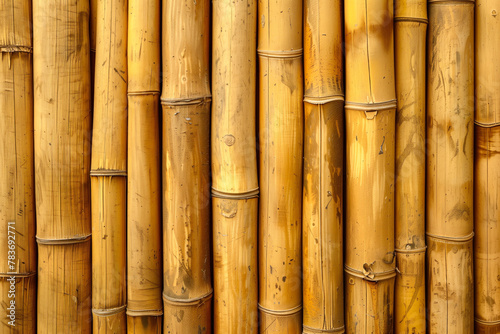 © kossovskiy, Fototapeta premium Golden bamboo stems close up