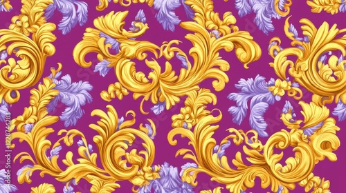 © Big9869, Fototapeta premium Golden Baroque Rococo Floral Pattern Design