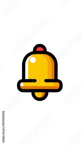 © PS Poppy, Fototapeta premium Golden Bell Icon: A vibrant golden bell icon against a clean, uncluttered background, perfect for notifications and alerts, rendered in a flat style.