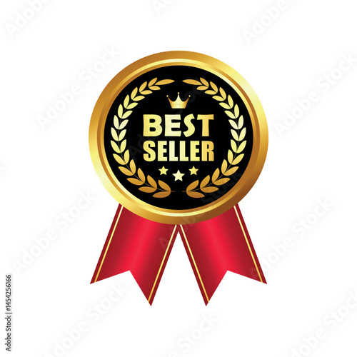 © tri winarno, Fototapeta premium Golden best seller label with wreath laurel and red ribbon. Used for business purpose