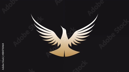 Obraz premium Golden Bird Logo with Spread Wings on Black Background
