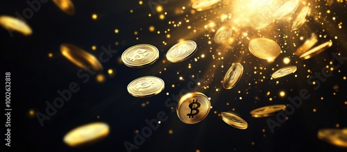 © matoya, Obraz premium Golden Bitcoin Shower on Black Background