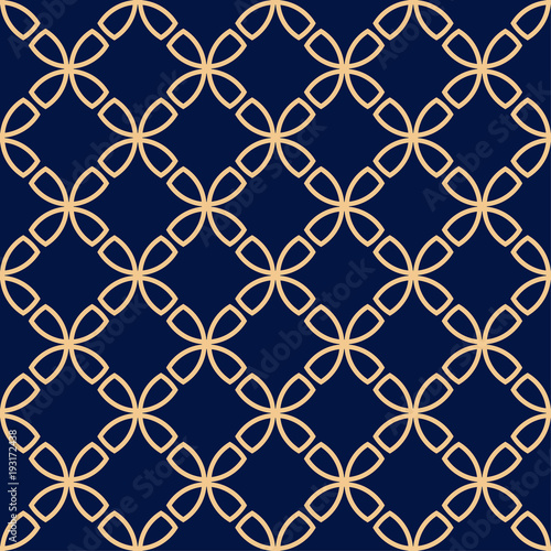 © Liudmyla, Naklejka premium Golden blue geometric abstract seamless pattern