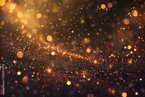 Fototapeta premium Golden bokeh and shimmering glitter lights with festive sparkle and warm glowing particles