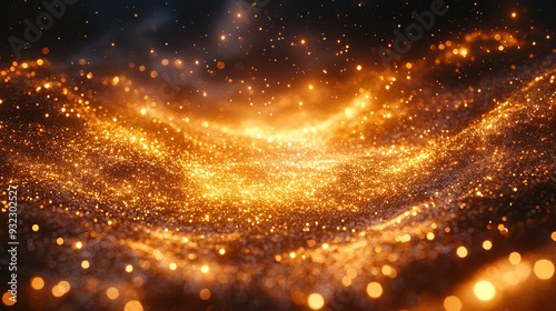 © Hanna, Naklejka premium Golden Bokeh Light Effect with Sparkling Glitter Overlay perfect for festive, elegant, or celebratory design projects