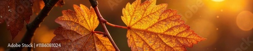 Fototapeta premium Golden brown grape leaf with waxy texture and intricate veins, botanical,...