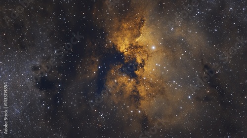 © procreation, Fototapeta premium Golden Brown Nebula in Dark Space with Bright Stars