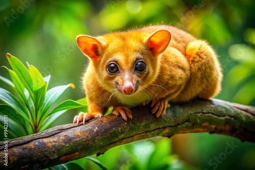 © Danicha, Fototapeta premium Golden Brush Tail Possum Resting on a Branch in a Lush Green Forest Environment During Daylight