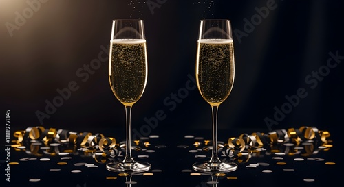Obraz premium Golden bubbles and confetti as part of the elegant preparation for a New...