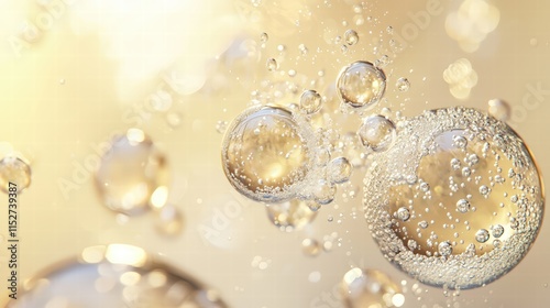 © vuang, Fototapeta premium Golden bubbles floating in soft light