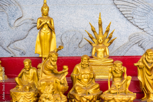 Fototapeta premium Golden Buddha Chinese style pattern at Wat Leng Nei Yee 2 Temple.Bangkok,...