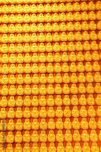 © Direk Takmatcha, Fototapeta premium Golden buddha on wooden wall
