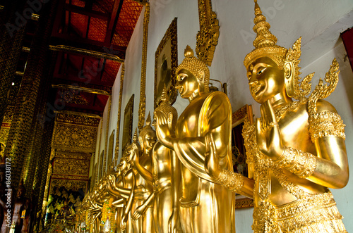 © tyodwong, Fototapeta premium Golden buddha statue in buddhism temple thailand