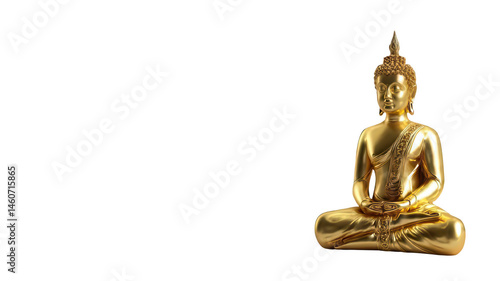 Fototapeta premium Golden Buddha Statue Sitting in Lotus Pose Isolated on White Background Transparent Background
