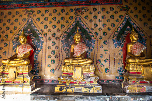 © Natalia, Fototapeta premium Golden Buddha statues in Wat Arun temple, Bangkok, Thailand