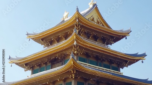 Naklejka premium Golden Buddhist Temple, traditional Japanese architecture with ornate details...