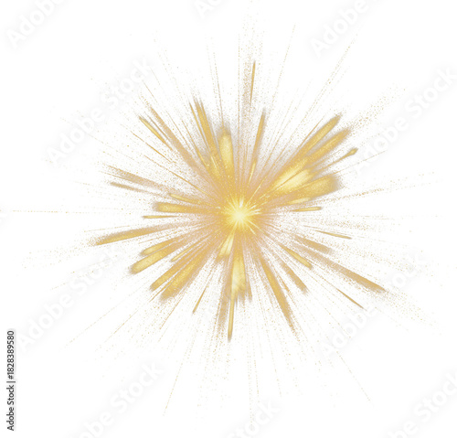 © Alex Pro, Obraz premium Golden burst with radiant streaks and particles, resembling a festive firework or light explosion.