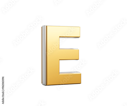 © Hammad, Obraz premium Golden Capital Letter E Gleams With Sleek Modern Design Bold Font With Sharp Edges 3D Illustration