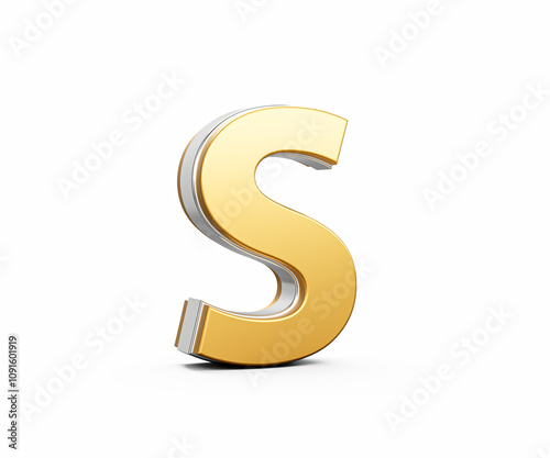 © Hammad, Fototapeta premium Golden Capital Letter S Gleams With Sleek Modern Design Bold Font With Sharp Edges 3D Illustration
