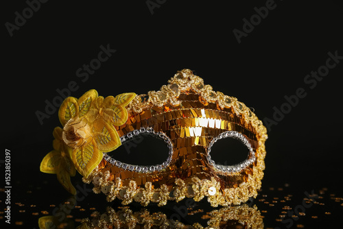 © Pixel-Shot, Naklejka premium Golden carnival mask on black background