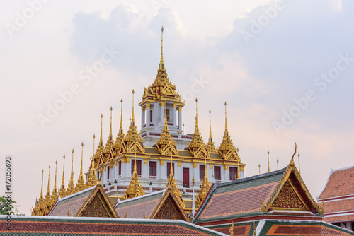 Naklejka premium Golden Castle in public park/Golden pagoda in Wat Ratcha Nadda Temple
