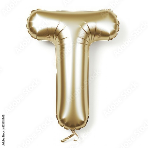 © Tuyres, Fototapeta premium Golden Celebration Balloon in Alphabet Letter Shape Isolated on White Background. Silver Letter T Ballon. Generative AI illustration.