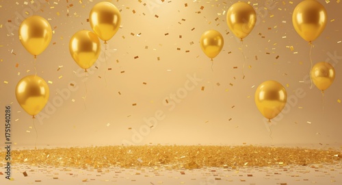 Fototapeta premium Golden Celebration Balloons and Confetti Background
