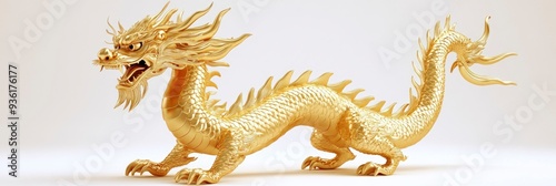 Obraz premium Golden Chinese dragon, full body, front view, white background