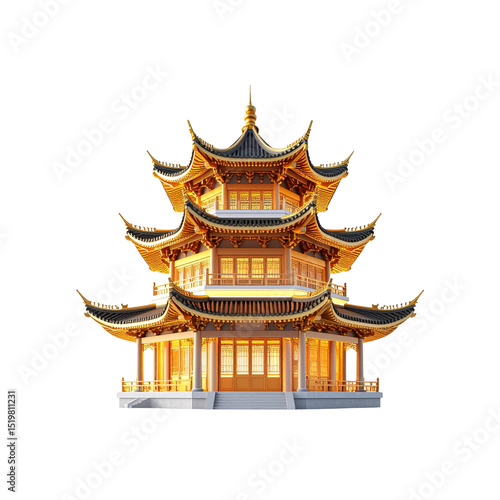 © MDSAIDE, Fototapeta premium Golden chinese pagoda architecture night scene design on transparent background