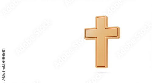 © WAFIQ, Obraz premium Golden christian cross isolated on white backdrop with smooth reflections