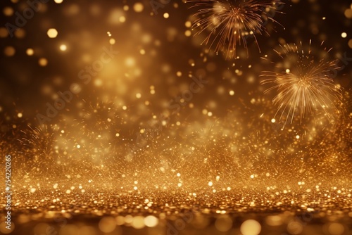 © Saba, Naklejka premium Golden christmas background. Fireworks.