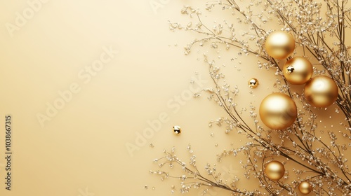 Obraz premium Golden Christmas Baubles Hanging with Glitter Against a Bright Background