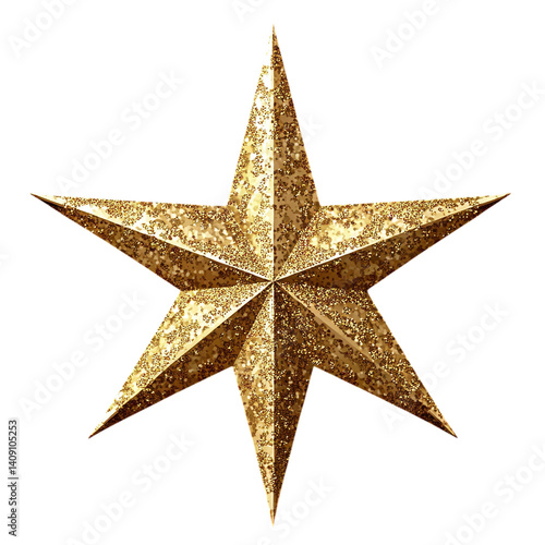 Obraz premium Golden Christmas star ornament with a textured surface isolated on...