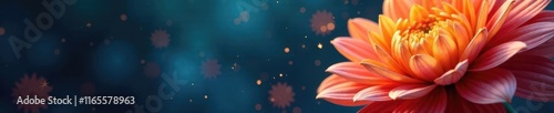 © photohappy, Fototapeta premium Golden chrysanthemum fireworks bloom against deep blue, elegant, bright, show