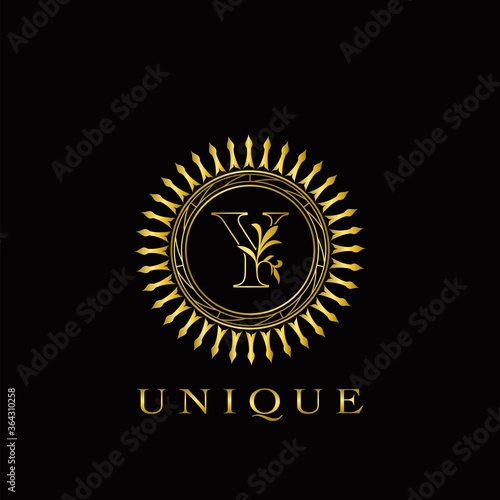 Naklejka premium Golden Circle Deco Y Luxury Floral Letter Logo Design. Monogram unique emblem...